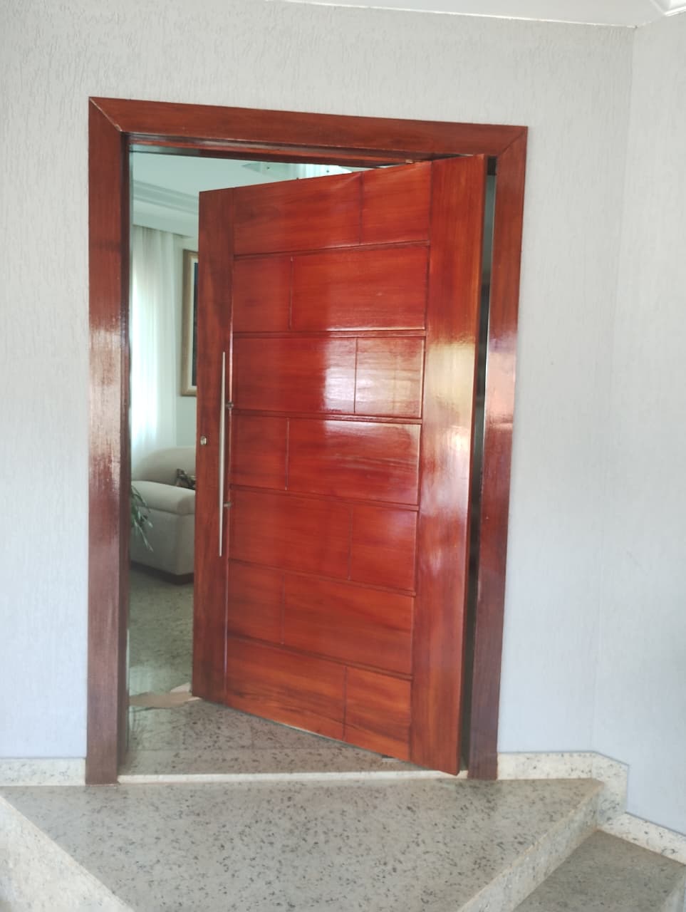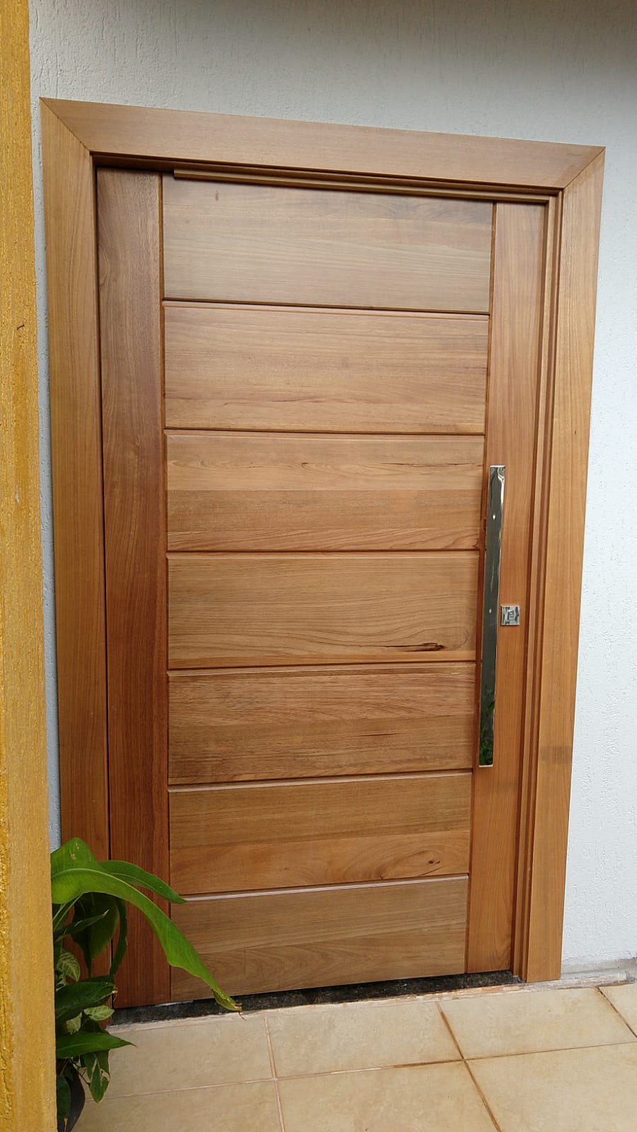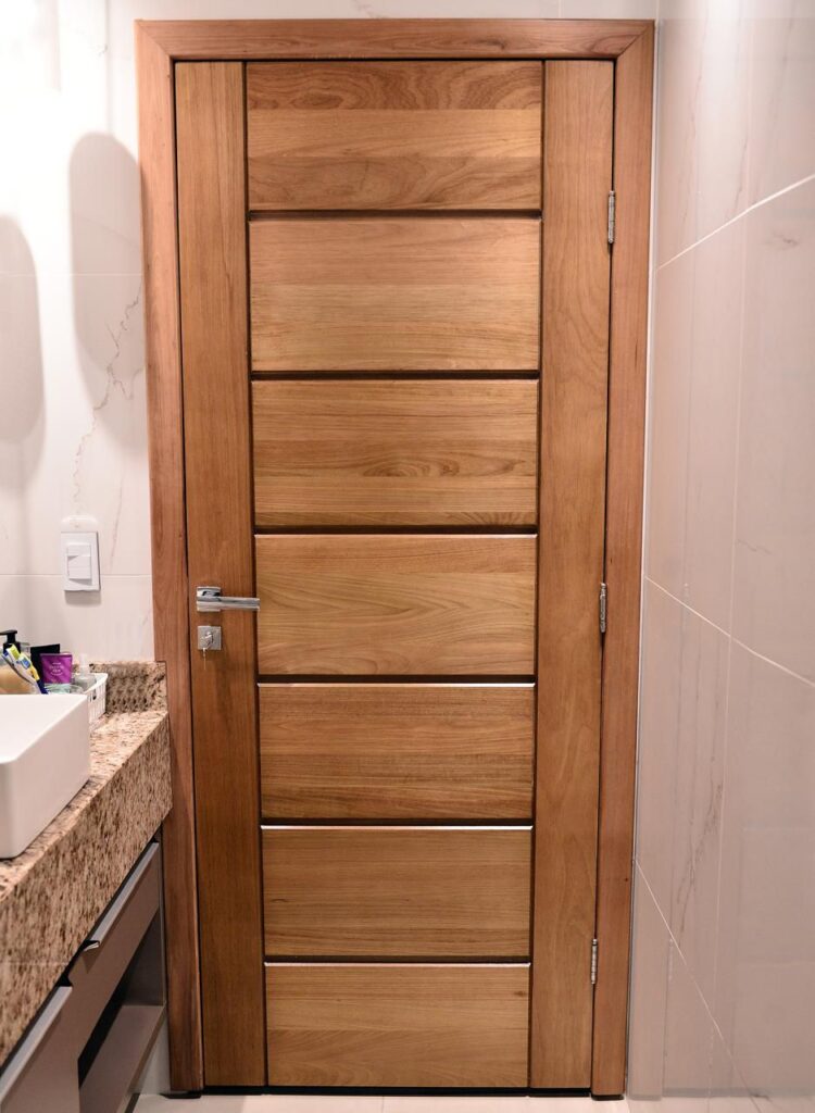 Além da presença estrutural característica da madeira maciça, a porta oferece desempenho consistente no uso diário, estabilidade e melhor vedação acústica quando comparada a soluções leves. O resultado é uma peça que transmite solidez já na instalação e mantém esse padrão ao longo do tempo.